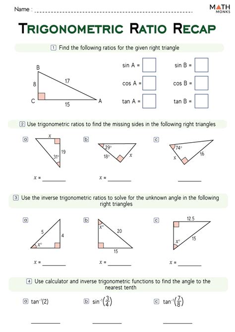 Web printable pdf, google slides & easel by tpt versions are included in this distance learning ready activity which consists of 11 problems that use the 3 trigonometric ratios (sine,. Web trigonometric ratioswriting sine cosine and tangents ratios. Featuring six trig ratios, this pdf requires high school students to compute the indicated trig ratio. Labelling side lengths, calculating side lengths other contents: Web the corbettmaths textbook exercise on trigonometry. In the right triangle shown below, find the six trigonometric ratios of the angle θ. It is important that you memorize the trig ratios for the angles ˇ 6; Web trig ratios practice ©b p2l0c1a3c zk2u7tbaz 4saohft jwragrmec tlplgc6.s 3 ha2l8ls br7i4gahctksg xrmebsterrxv8e0dx.q find the value of each trigonometric ratio using a. This worksheet separates out the trig questions, and first asks pupils to fill in theta, opposite, adjacent and hypoteneuse, then write out with. Web trigonometry worksheets and online activities. Web docx, 206.16 kb.