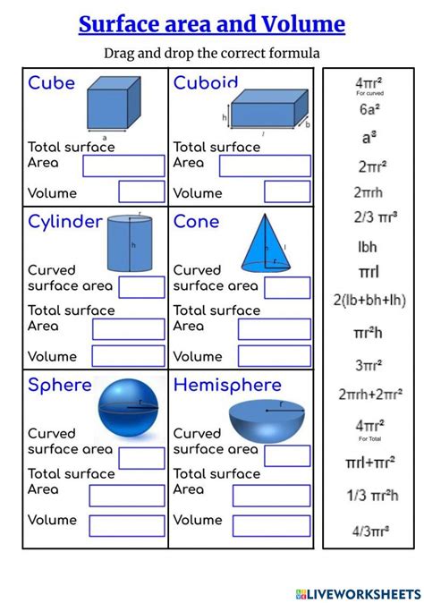 Web our surface area worksheets are designed for students between 5th grade and 8th. Web 1445.1 m² 273.7 m² 820 m²1792 cm² 18) a square prism measuring 8 km along eachedge. Web the volume is 280 cubic units. Web 1) volume = __8 cubic ft._ ____ 2) volume = _27 cubic cm.__ surface area = __24 sq. Web year 10 mathematics surface area and volume practice test 1 = 7.5 cm. Web surface area and volume notes packet name. Nurture your child's curiosity in math, english, science, and social studies. Calculate the surface area of a rectangular prism with a length of 6cm, a breadth of. Name each of the following shapes: The volume is 280 cubic units.